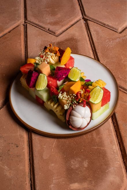 coconut, passion fruit, pineapple, mix berries, watermelon, lime, matcha, vanilla, chocolate, yogurt raspberry Seasonal exotic Fruit platter